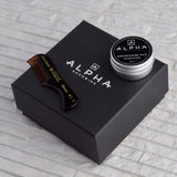 - Alpha Grooming's gift set includes a moustache wax and moustache & beard comb.